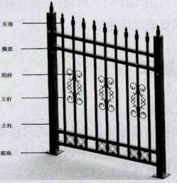 铝合金护栏是由横梁、立柱、底座、尖角、立杆、立 柱、图样型件等组成。本产品从设计理念上完全符合当今 时代对防护栏产品外形美观度的追求。